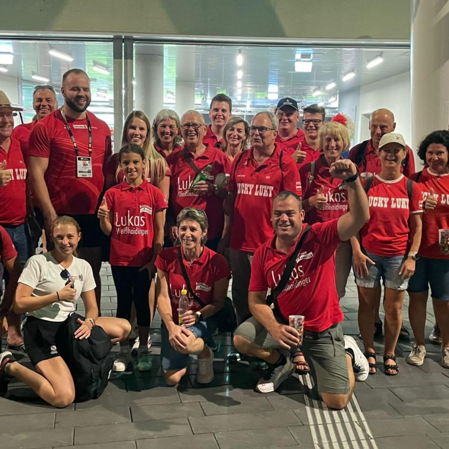 Wenn Lukas Weißhaidinger zum Einladungs-Meeting nach Taufkirchen lädt, dann darf natürlich auch der Nachwuchs nicht fehlen. Insgesamt 40 Kinder nahmen am Lucky-Luki-Kindercup teil (60-m-Lauf, Weitsprung, Vortex-Wurf). Bei der Siegerehrung war der Olympiadritte natürlich mit von der Partie.