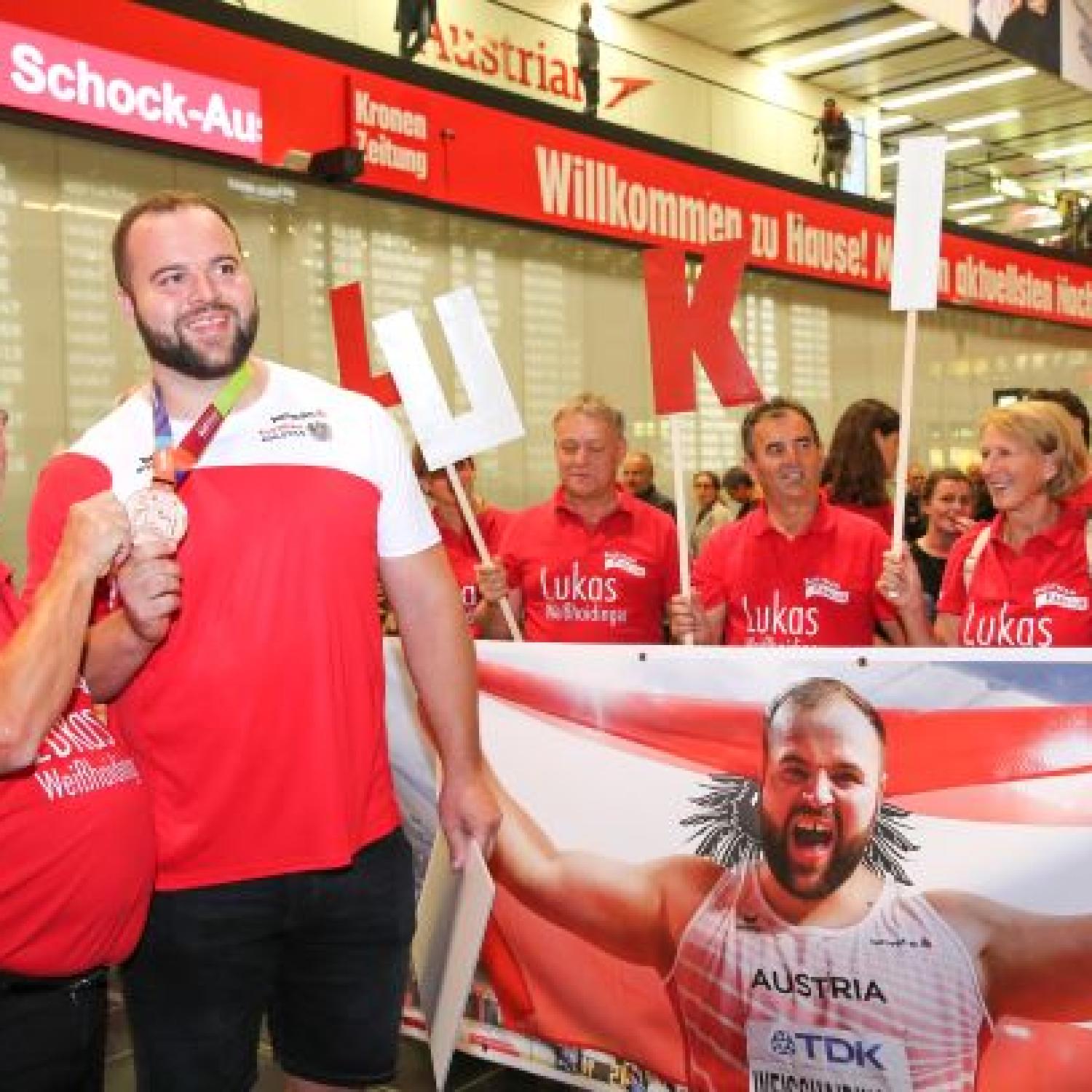 Der Lucky Luki-Fanklub, WM-Prämien-Sponsor Helvetia, ORF, Servus TV... Der Empfang vom frischgebackenen Bronzemedaillengewinner in Wien war WM-würdig.